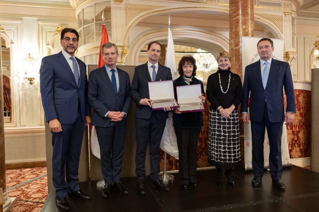 Photo : cérémonie de nomination “Membre d’Honneur” pour (au centre) Mme Marie-Catherine Caruso Ravéra et M. Thomas Sanmori, entourés à leur droite par M. Moustapha El-Solh, Président d’Honneur de l’A.C.H.M. et Consul honoraire du Liban à Monaco, S.E. M. Christophe Mirmand, Ministre d’Etat, et à leur gauche, Mme Isabelle Berro-Amadeï, Conseiller de Gouvernement – Ministre des Relations Extérieures et M. Marc Lecourt, Président de l’A.C.H.M. et Consul Général honoraire de Slovénie à Monaco,