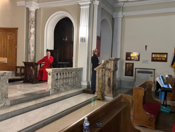 Photo : Mme Sophie Krafft, Consul honoraire de Suède à Monaco, lors de son discours d’accueil et de présentation de la Sainte Lucia, en l’église anglicane de Monaco.