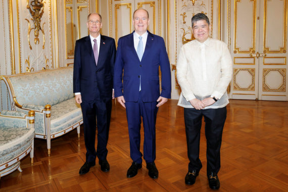 Photo (de gauche à droite) : M. David Zuellig, Consul Général honoraire des Philippines à Monaco, S.A.S. le Prince Albert II, S.E. M. Eduardo José Atienza de Vega, Ambassadeur ds Philippines à Monaco. © Michaël Alesi / Palais princier