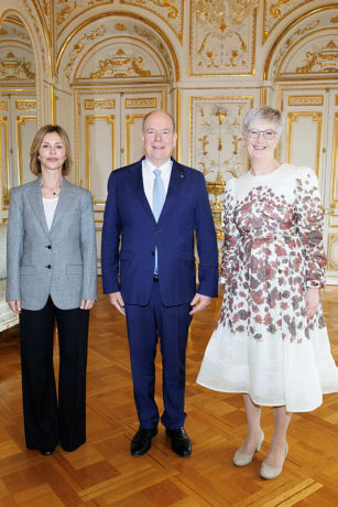 Photo (de gauche à droite) : Mme Sophie Krafft, Consul honoraire de Suède à Monaco, S.A.S. le Prince Albert II, S.E. Mme Caroline Vicini, Ambassadeur de Suède à Monaco.