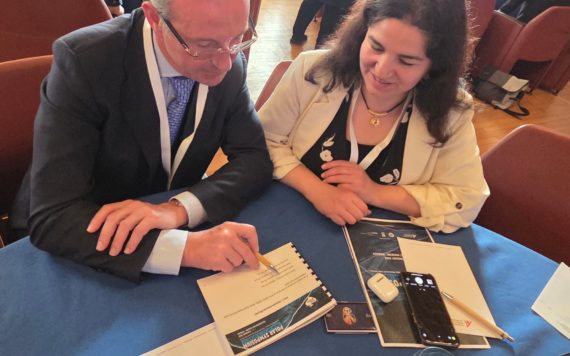 Photo : M. Paolo Tricotti, Consul honoraire du Chili à Monaco et Mme Paula Gonzàlez Galves, responsable des questions écologiques à l’Ambassade du Chili à Paris, lors des tables rondes et d’étude du Polar Symposium. © D.R. Consulat du Chili
