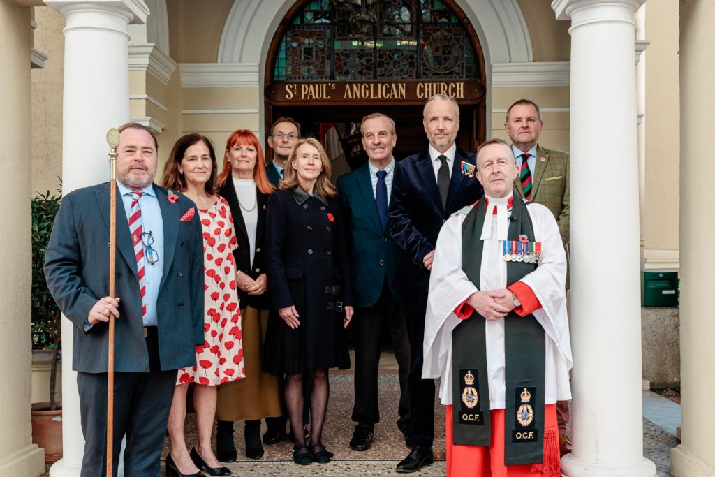 Le dimanche 9 Novembre 2025 et sur l’invitation du Révérend Père Hugues Bearn, Curé de l’église anglicane Saint Paul, M. Eric Blair, Vice-Président de l’A.C.H.M. et Consul honoraire du Royaume Uni et de l’Irlande du Nord à Monaco, et Mme Caroline Pratte, Consul honoraire du Canada à Monaco, ont participé à la “Cérémonie annuelle du Souvenir”.